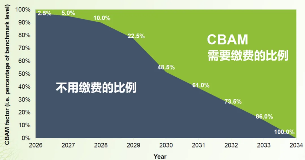 CBAM的实际征收比例,摘自:欧盟驻华代表团2023年11月16日在北京的演讲